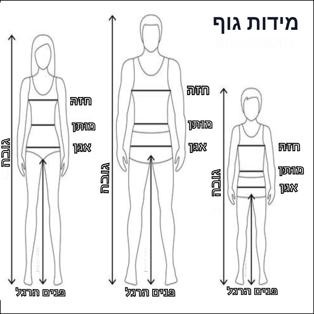* המידות בסנטימטרים ומתייחסות למדידת גוף.